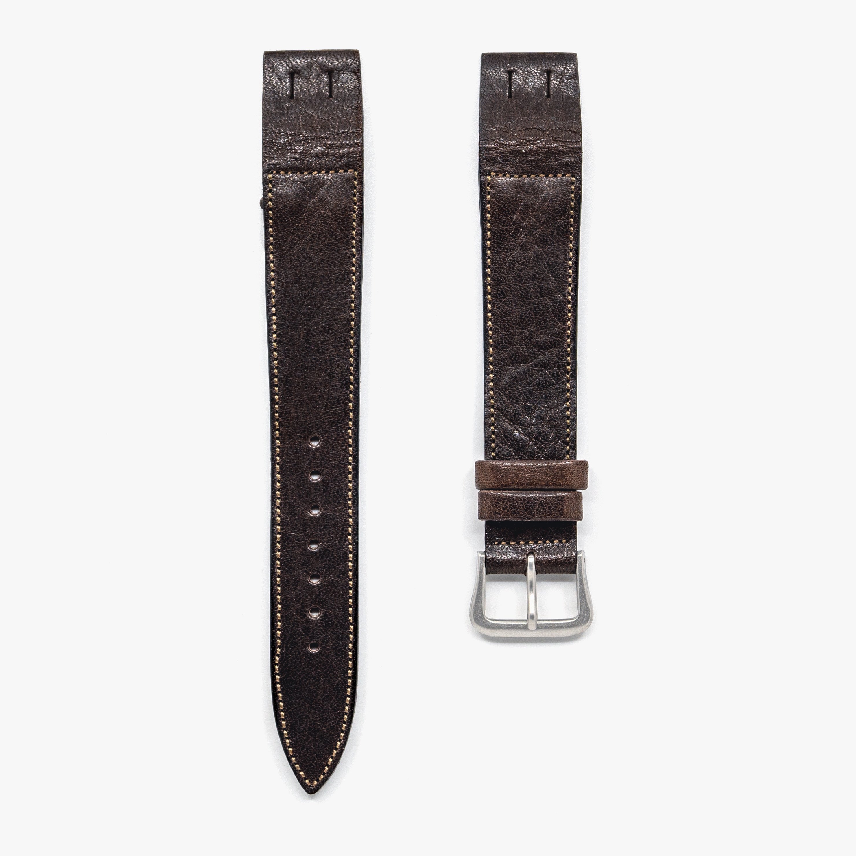 Designed to pair perfectly with any vintage watch, no detail has been spared in the development of our watch straps, from the leather treatment right down to the colour of the stitching. Handcrafted by Accurate Form in Japan out of the finest Japanese, American and Italian hides, our leather watch straps are built to the most exacting standards, embodying the highest level of Japanese craftsmanship and attention to detail.